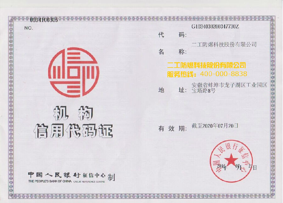 • 機構(gòu)信用代碼證